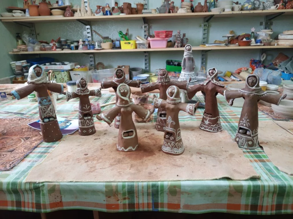 Работать с глиной оказалось невероятно интересно: материал был мягким и послушным, а создавать детали национального костюма — по-настоящему увлекательно. Каждый из нас старался сделать свою «невесту» особенной, с любовью вылепливая изящное платье и головной убор, а затем расписывая фигурку, чтобы передать всю красоту дагестанского наряда.