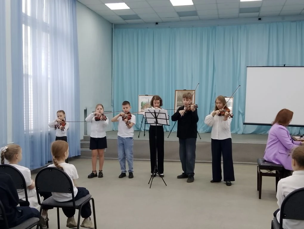 Присутствующим ребятам и их педагогам из школы №1 им. А. М. Денисова была представлена концертная программа: наши нынешние музыканты и хореографы подарили гостям яркие выступления, продемонстрировав, чему они уже научились, а также видеопрезентация о работе художественного отделения и выставка работ обучающихся. В завершение встречи гости смогли задать вопросы, пообщаться с преподавателями и обучающимися.Спасибо всем, кто пришел к нам в гости!